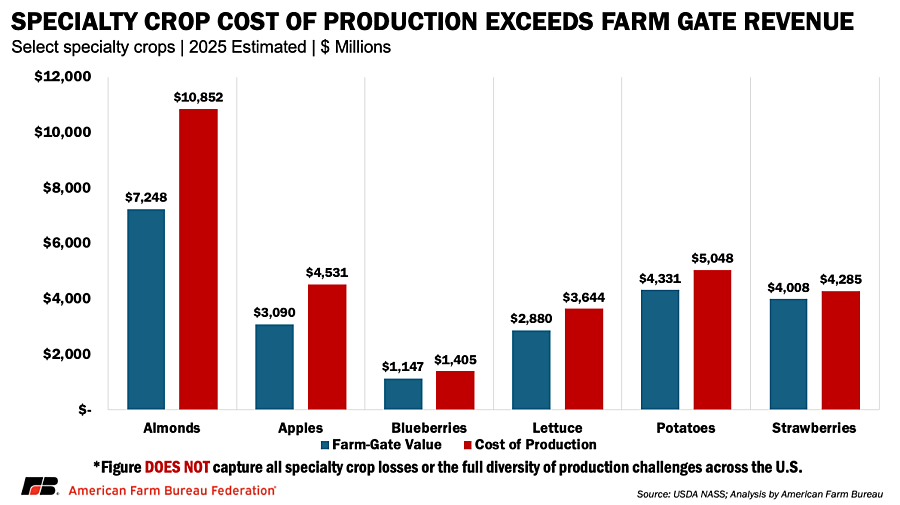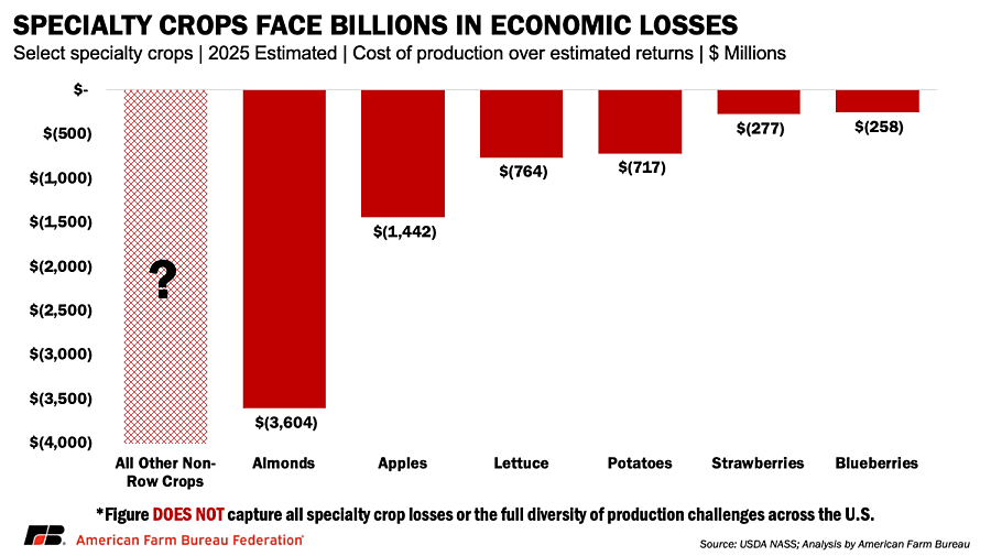 This lack of consistent data should not be mistaken for a lack of hardship. One part of U.S. agriculture benefits from publicly supported, frequently updated market information; the other does not. That gap makes it significantly harder to quickly and credibly quantify the economic losses specialty crop farmers are absorbing.